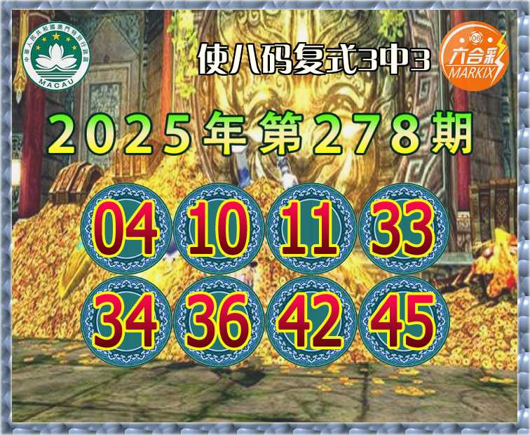 279期:【綬傷迗使】 ☝️八码复式3中3☝️