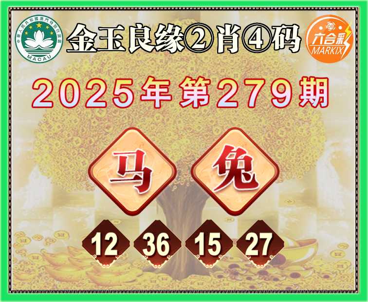 279期:《金玉良缘》 🥫②肖④码🥫【马兔】【12.36.15.27】开:兔27准