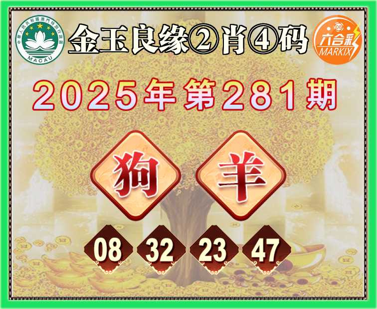 281期:《金玉良缘》 🥫②肖④码🥫【狗羊】【08.32.23.47】开:羊47准