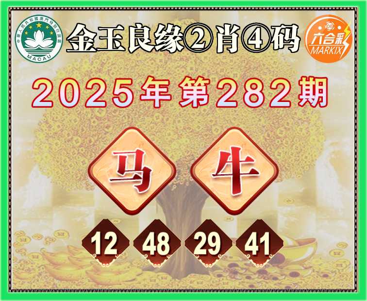 282期:《金玉良缘》 🥫②肖④码🥫【马牛】【12.48.29.41】开:牛41准