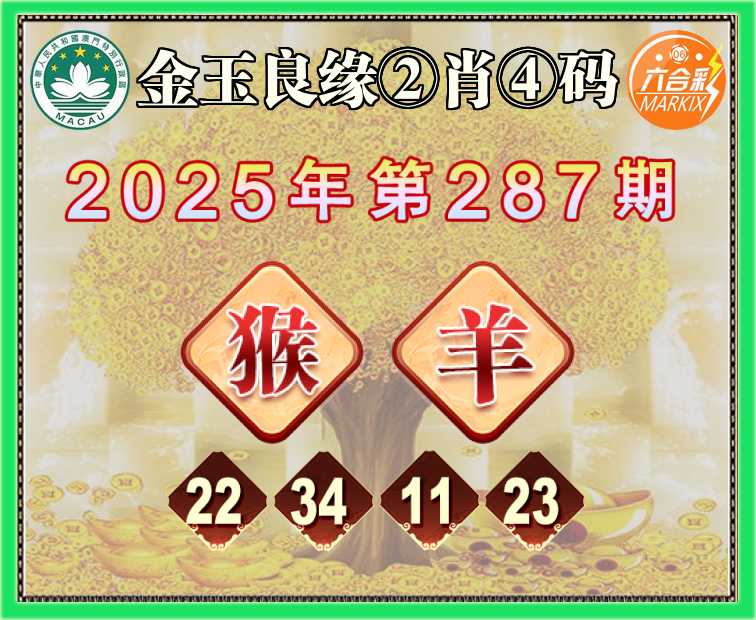 287期:《金玉良缘》 🥫②肖④码🥫【猴羊】【22.34.11.23】开:猴34准