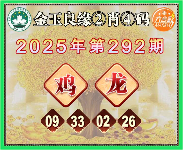 292期:《金玉良缘》 🥫②肖④码🥫【鸡龙】【09.33.02.26】开:龙02准