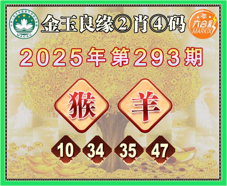 293期:《金玉良缘》 🥫②肖④码🥫【猴羊】【10.34.35.47】开:羊47准