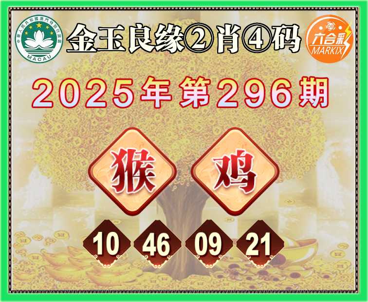 296期:《金玉良缘》 🥫②肖④码🥫【猴鸡】【10.46.09.21】开:猴22准