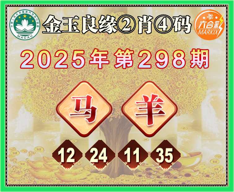 298期:《金玉良缘》 🥫②肖④码🥫【马羊】【12.24.11.35】开:羊23准