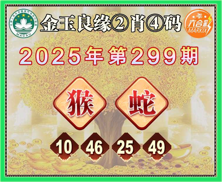299期:《金玉良缘》 🥫②肖④码🥫【猴蛇】【10.46.25.49】开:蛇49准