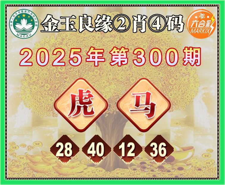 300期:《金玉良缘》 🥫②肖④码🥫【虎马】【28.40.12.36】开:虎40准