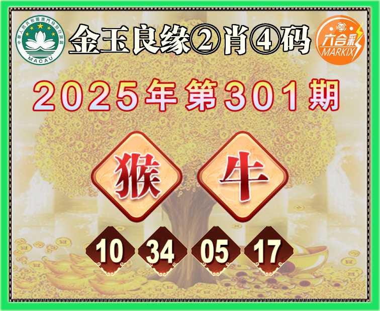 301期:《金玉良缘》 🥫②肖④码🥫【猴牛】【10.34.05.17】开:牛05准