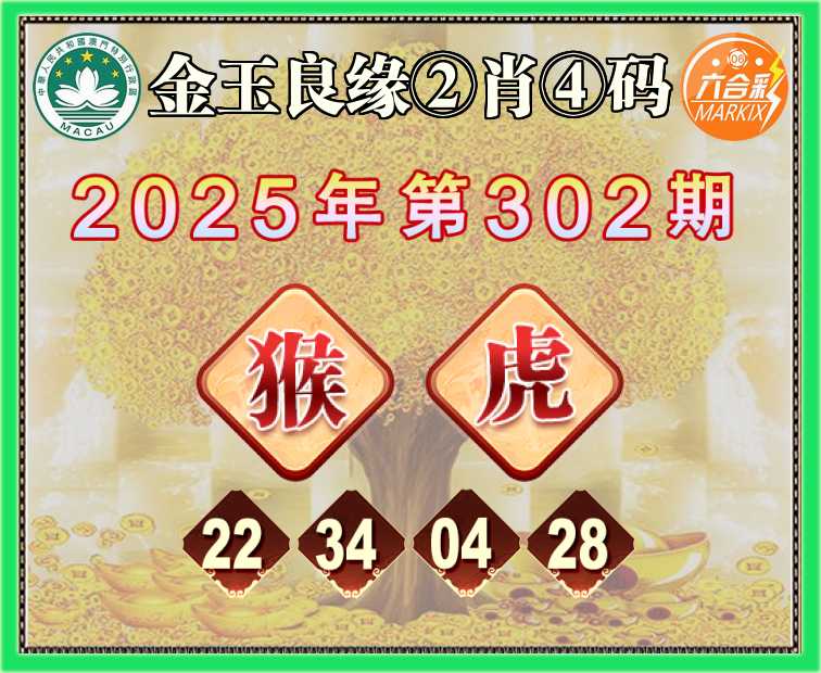302期:《金玉良缘》 🥫②肖④码🥫【猴虎】【22.34.04.28】开:猴22准