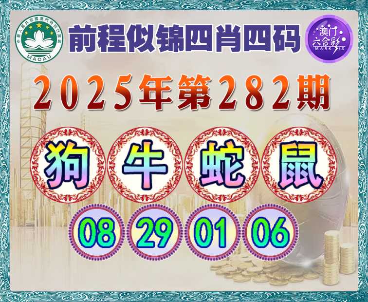 282期: 🥽《前程似锦》 🥽四肖四码🥽【狗牛蛇鼠】【08.29.01.06】开:牛41准