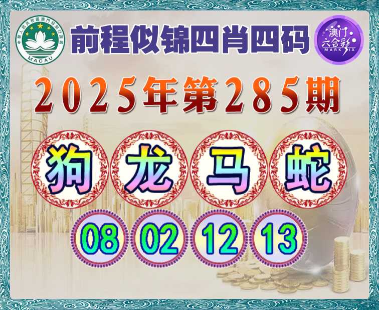 285期: 🥽《前程似锦》 🥽四肖四码🥽【狗龙马蛇】【08.02.12.13】开:马24准
