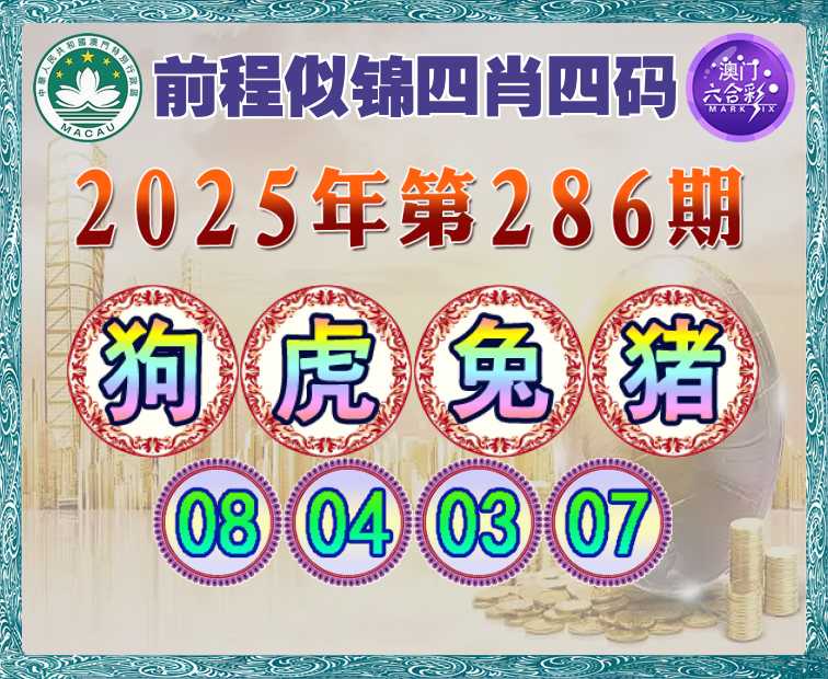 286期: 🥽《前程似锦》 🥽四肖四码🥽【狗虎兔猪】【08.04.03.07】开:兔03准