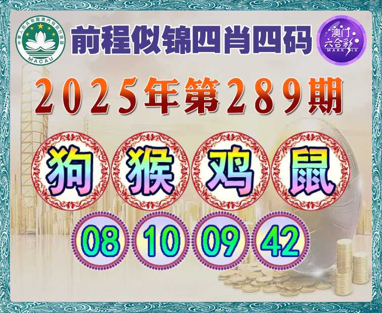 289期: 🥽《前程似锦》 🥽四肖四码🥽【狗猴鸡鼠】【08.10.09.42】开:鼠42准