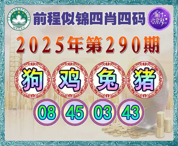 290期: 🥽《前程似锦》 🥽四肖四码🥽【狗鸡兔猪】【08.45.03.43】开:猪19准