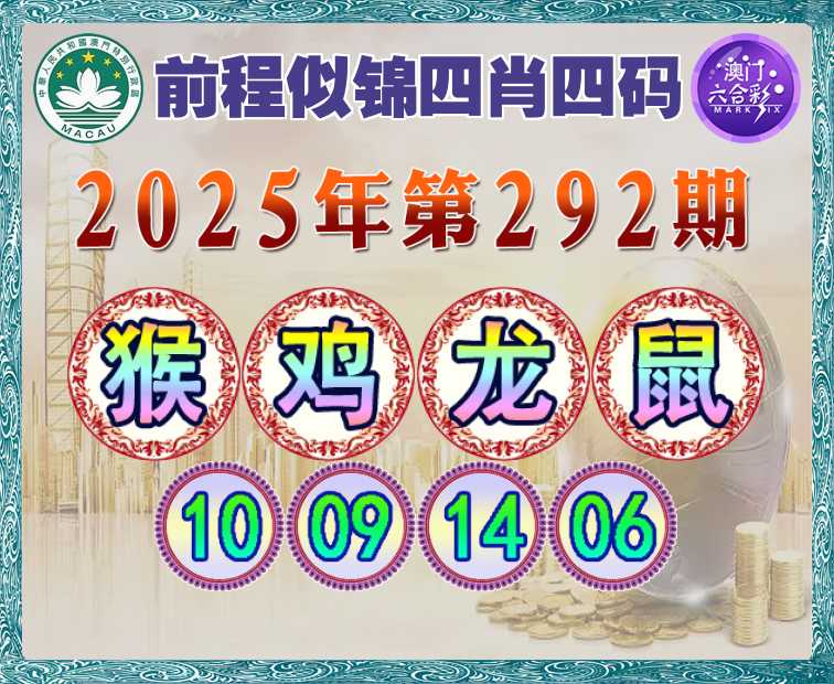 292期: 🥽《前程似锦》 🥽四肖四码🥽【猴鸡龙鼠】【10.09.14.06】开:龙02准
