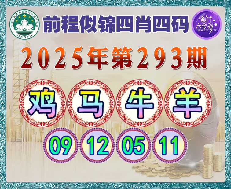293期: 🥽《前程似锦》 🥽四肖四码🥽【鸡马牛羊】【09.12.05.11】开:羊47准