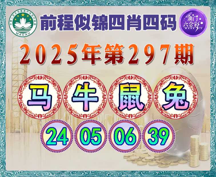 297期: 🥽《前程似锦》 🥽四肖四码🥽【马牛鼠兔】【24.05.06.39】开:狗44错
