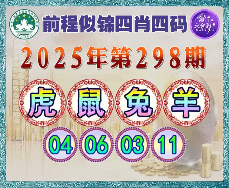 298期: 🥽《前程似锦》 🥽四肖四码🥽【虎鼠兔羊】【04.06.03.11】开:羊23准