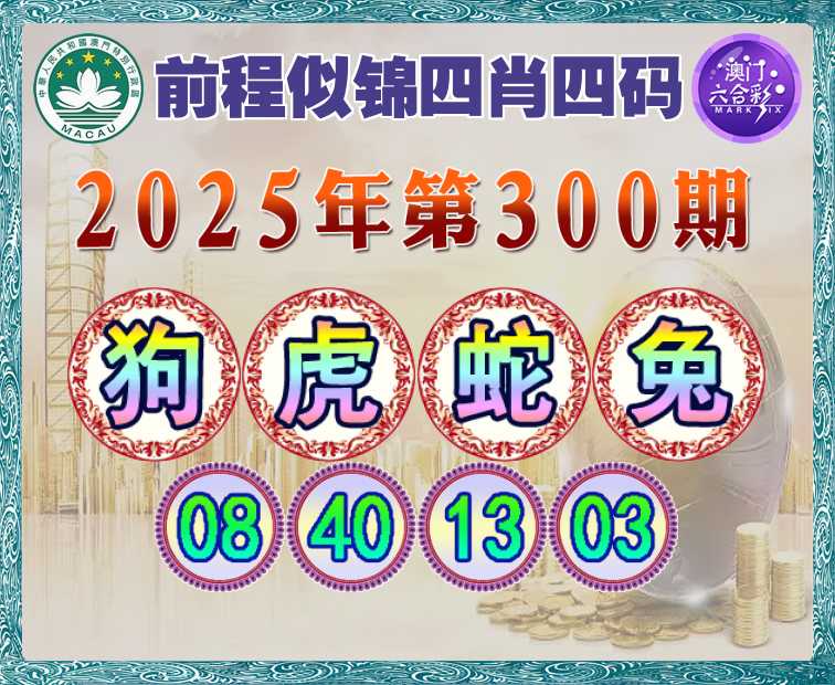 300期: 🥽《前程似锦》 🥽四肖四码🥽【狗虎蛇兔】【08.40.13.03】开:虎40准