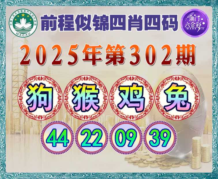 302期: 🥽《前程似锦》 🥽四肖四码🥽【狗猴鸡兔】【44.22.09.39】开:猴22准