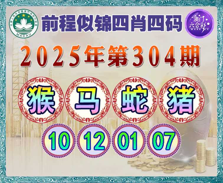 304期: 🥽《前程似锦》 🥽四肖四码🥽【猴马蛇猪】【10.12.01.07】开:马48准