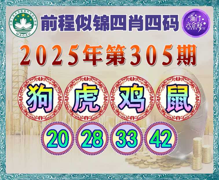 305期: 🥽《前程似锦》 🥽四肖四码🥽【狗虎鸡鼠】【20.28.33.42】开:鼠42准