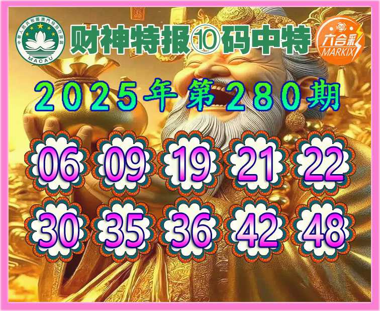 280期:『财神特报』 😜⑩码中特😜开:42准