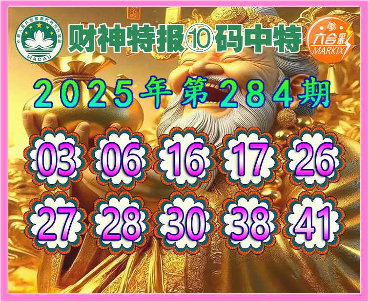 284期:『财神特报』 😜⑩码中特😜开:41准