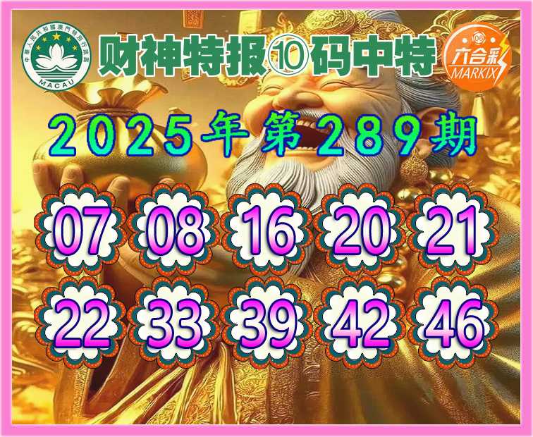 289期:『财神特报』 😜⑩码中特😜开:42准
