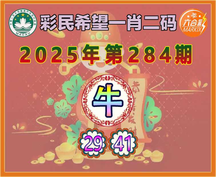 284期:『彩民希望』 😍一肖二码😍【牛】【29.41】开:牛41准