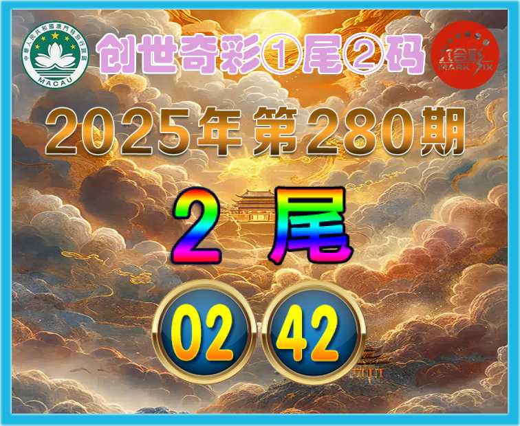 280期:【创世奇彩】 🍒①尾②码🍒【2尾主:02.42】开:42准
