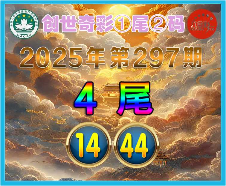 297期:【创世奇彩】 🍒①尾②码🍒【4尾主:14.44】开:44准