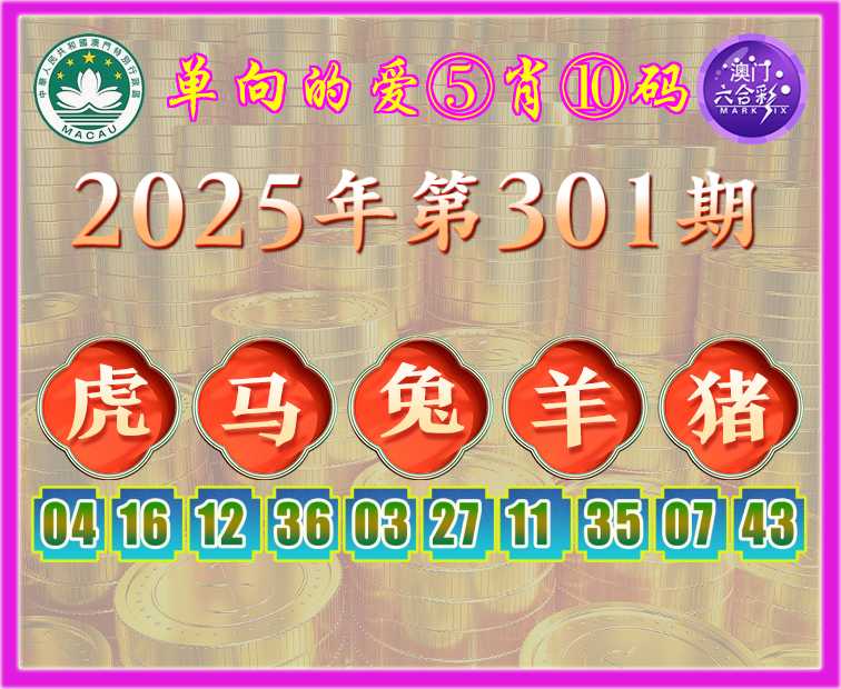 301期:【单向的爱】 ♦️⑤肖⑩码♦️【虎马兔羊猪】开:牛05错