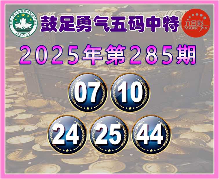 285期:〖鼓足勇气〗 🍒五码中特🍒【07.10.24.25.44】开:24准