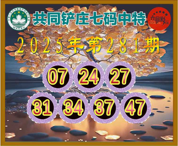 281期: ✨『共同铲庄』 ✨七码中特✨【07.24.27.31.34.37.47】开:47准