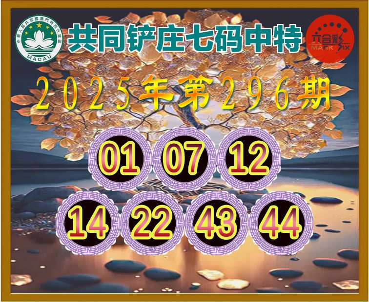 296期: ✨『共同铲庄』 ✨七码中特✨【01.07.12.14.22.43.44】开:22准