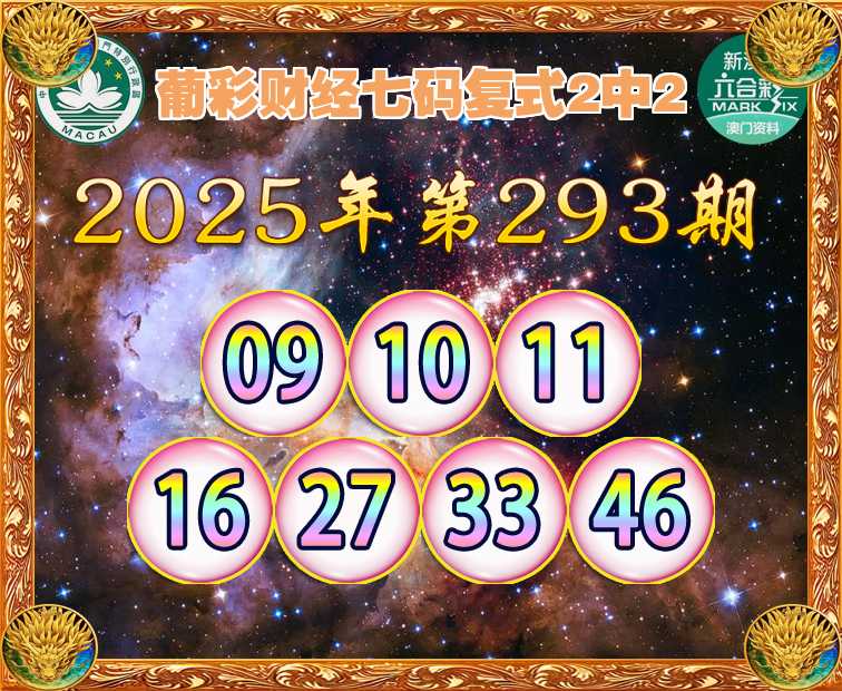 293期:《葡彩财经》 ☺️七码复式2中2☺️