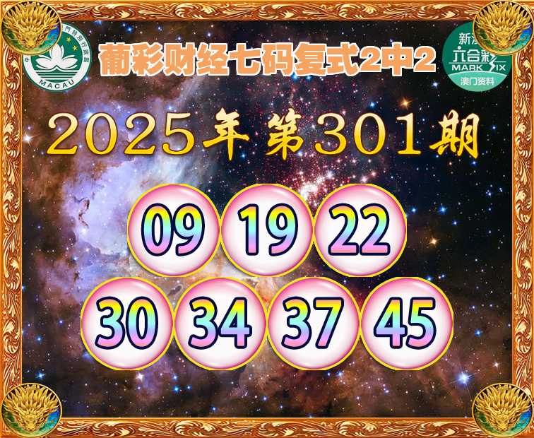 301期:《葡彩财经》 ☺️七码复式2中2☺️
