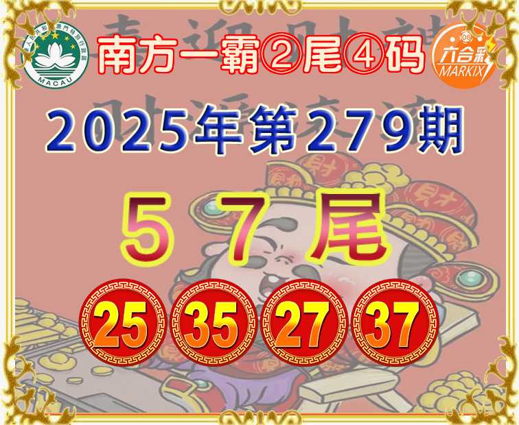 279期: 南方一霸 ✨②尾④码✨【57尾主:25.35.27.37】开:27准