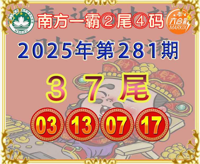 281期: 南方一霸 ✨②尾④码✨【37尾主:03.13.07.17】开:47准