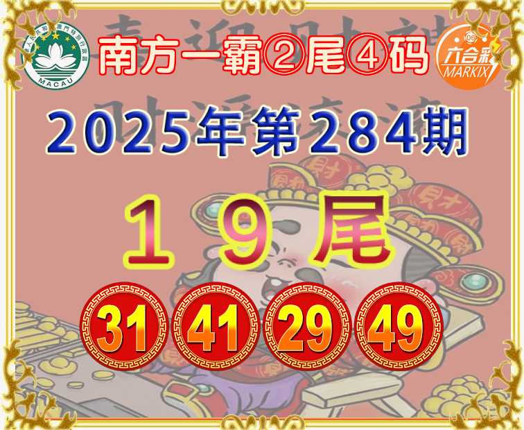 284期: 南方一霸 ✨②尾④码✨【19尾主:31.41.29.49】开:41准