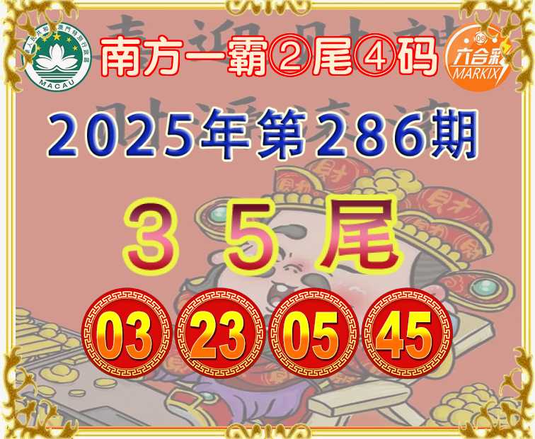 286期: 南方一霸 ✨②尾④码✨【35尾主:03.23.05.45】开:03准