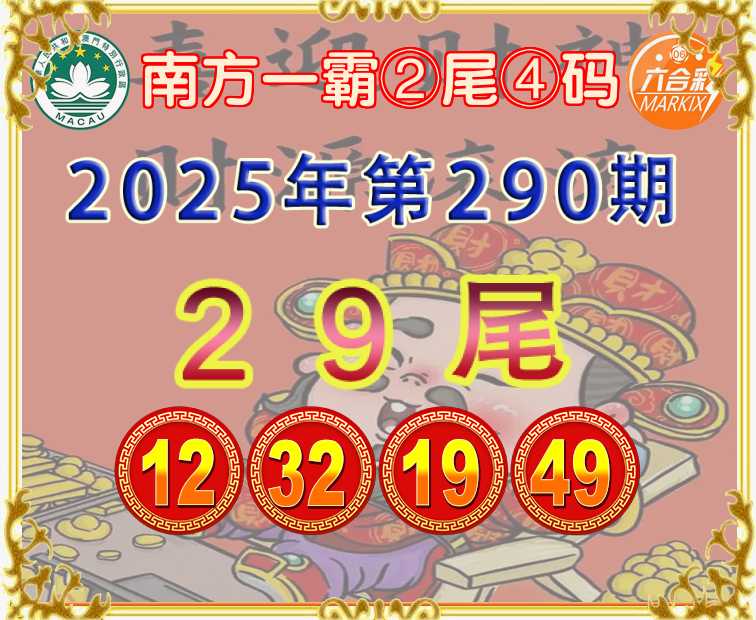 290期: 南方一霸 ✨②尾④码✨【29尾主:12.32.19.49】开:19准