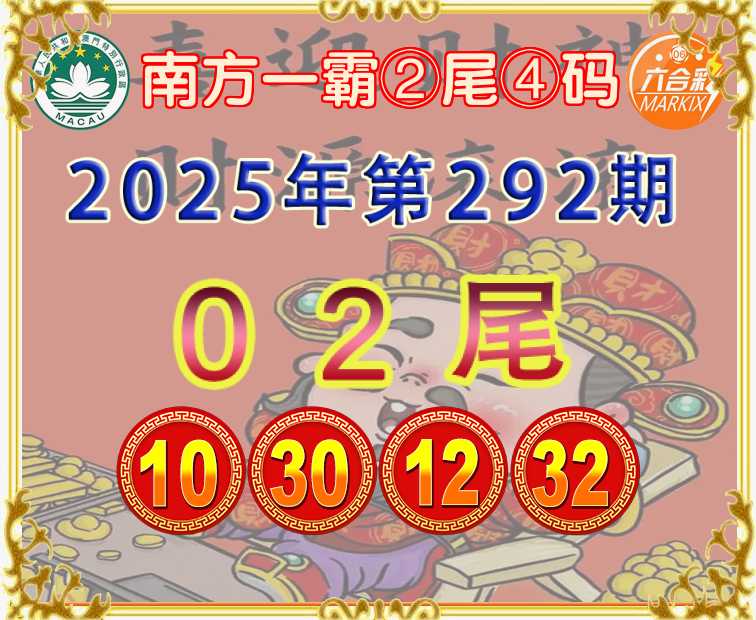 292期: 南方一霸 ✨②尾④码✨【02尾主:10.30.12.32】开:02准