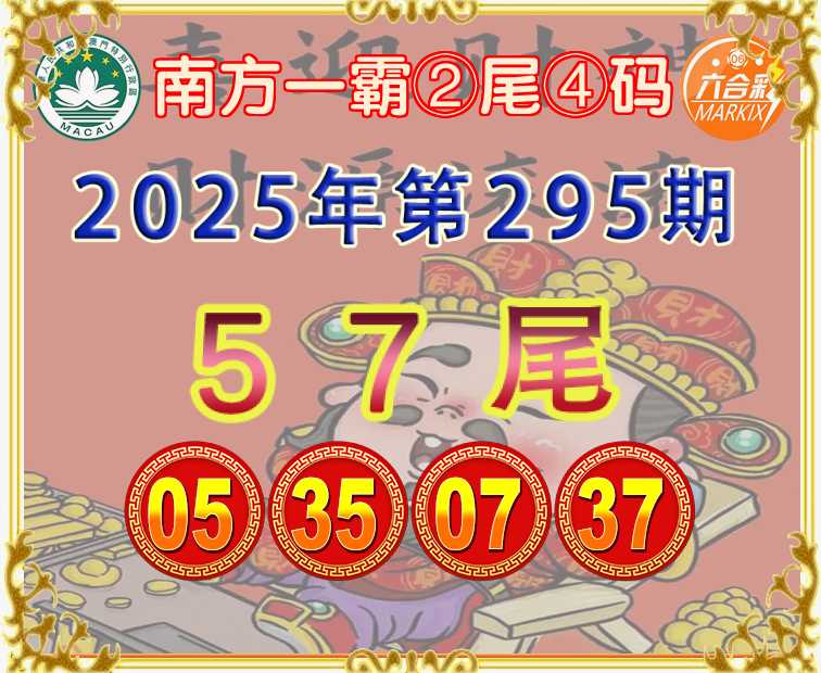 295期: 南方一霸 ✨②尾④码✨【57尾主:05.35.07.37】开:05准