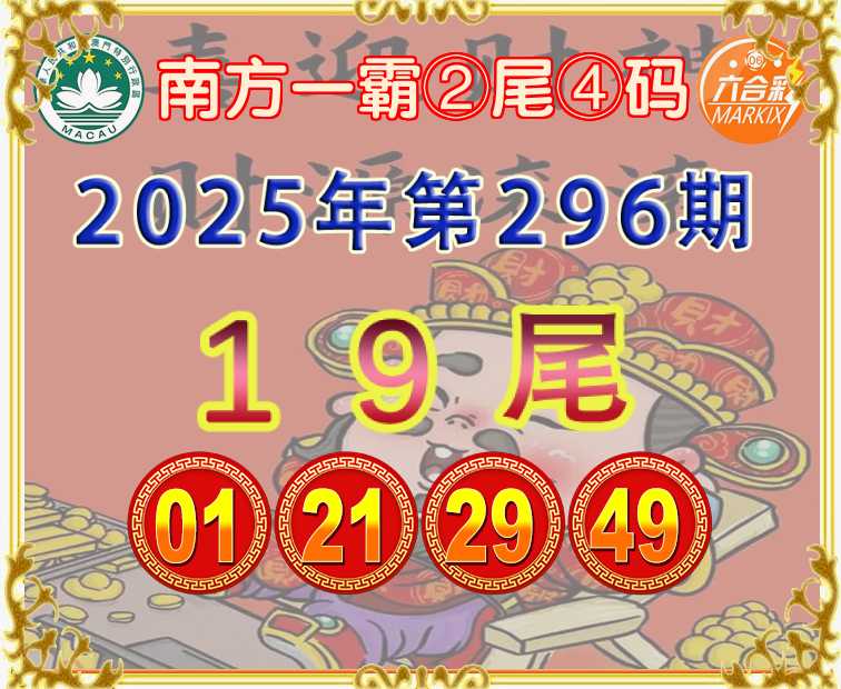 296期: 南方一霸 ✨②尾④码✨【19尾主:01.21.29.49】开:22错