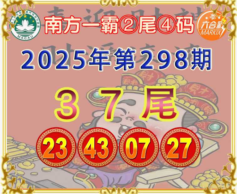 298期: 南方一霸 ✨②尾④码✨【37尾主:23.43.07.27】开:23准