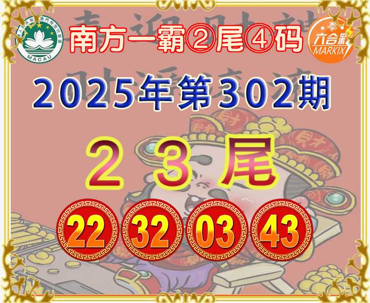 302期: 南方一霸 ✨②尾④码✨【23尾主:22.32.03.43】开:22准