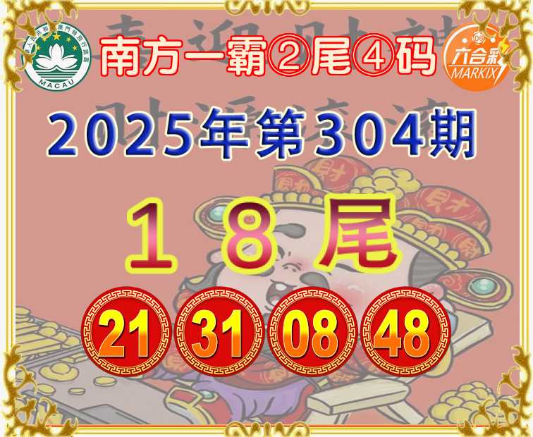 304期: 南方一霸 ✨②尾④码✨【18尾主:21.31.08.48】开:48准