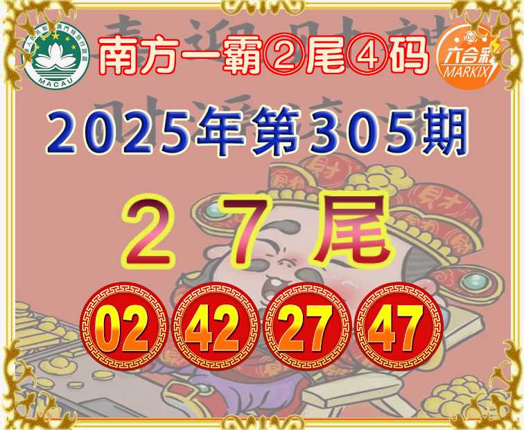 305期: 南方一霸 ✨②尾④码✨【27尾主:02.42.27.47】开:42准